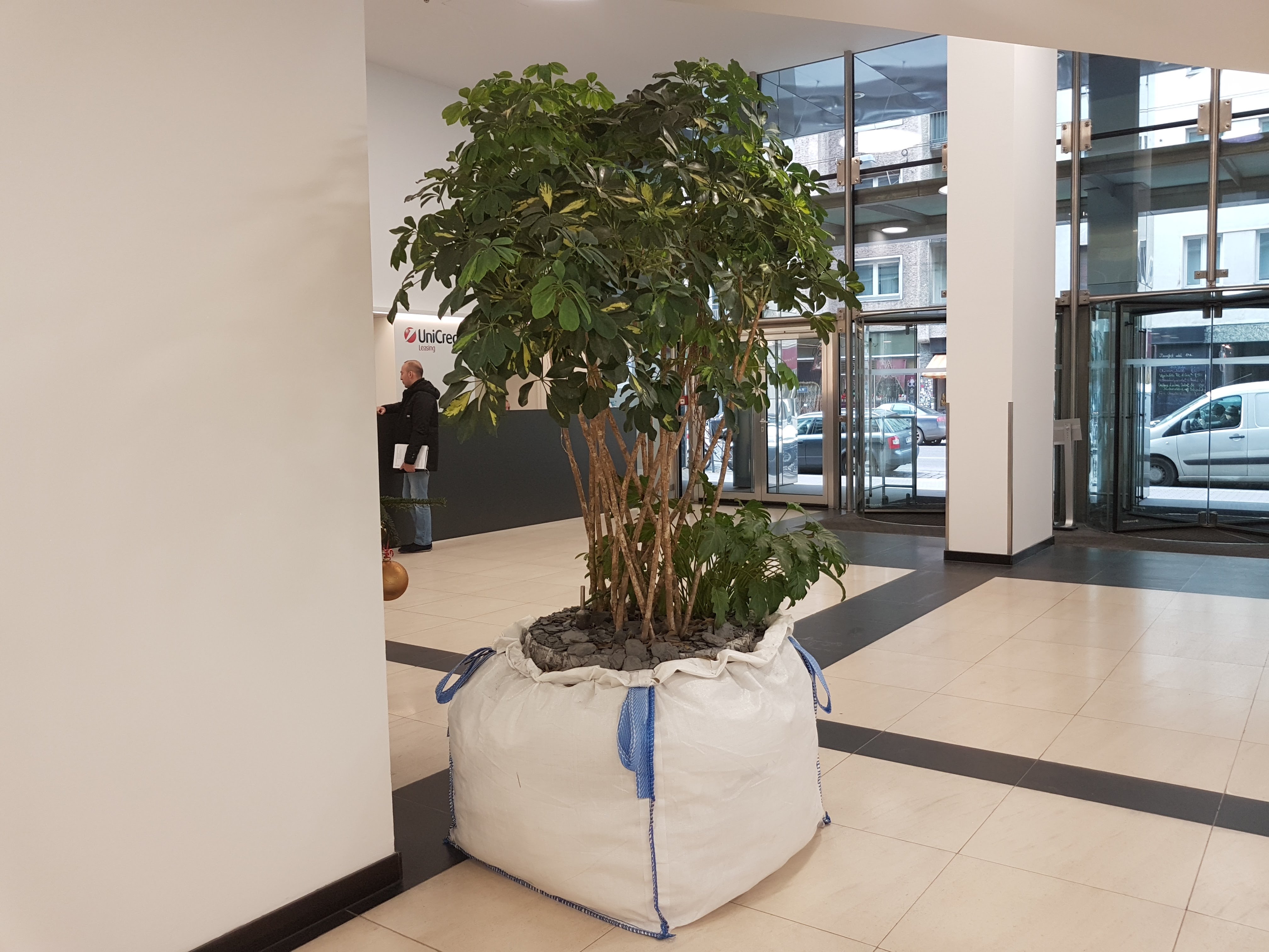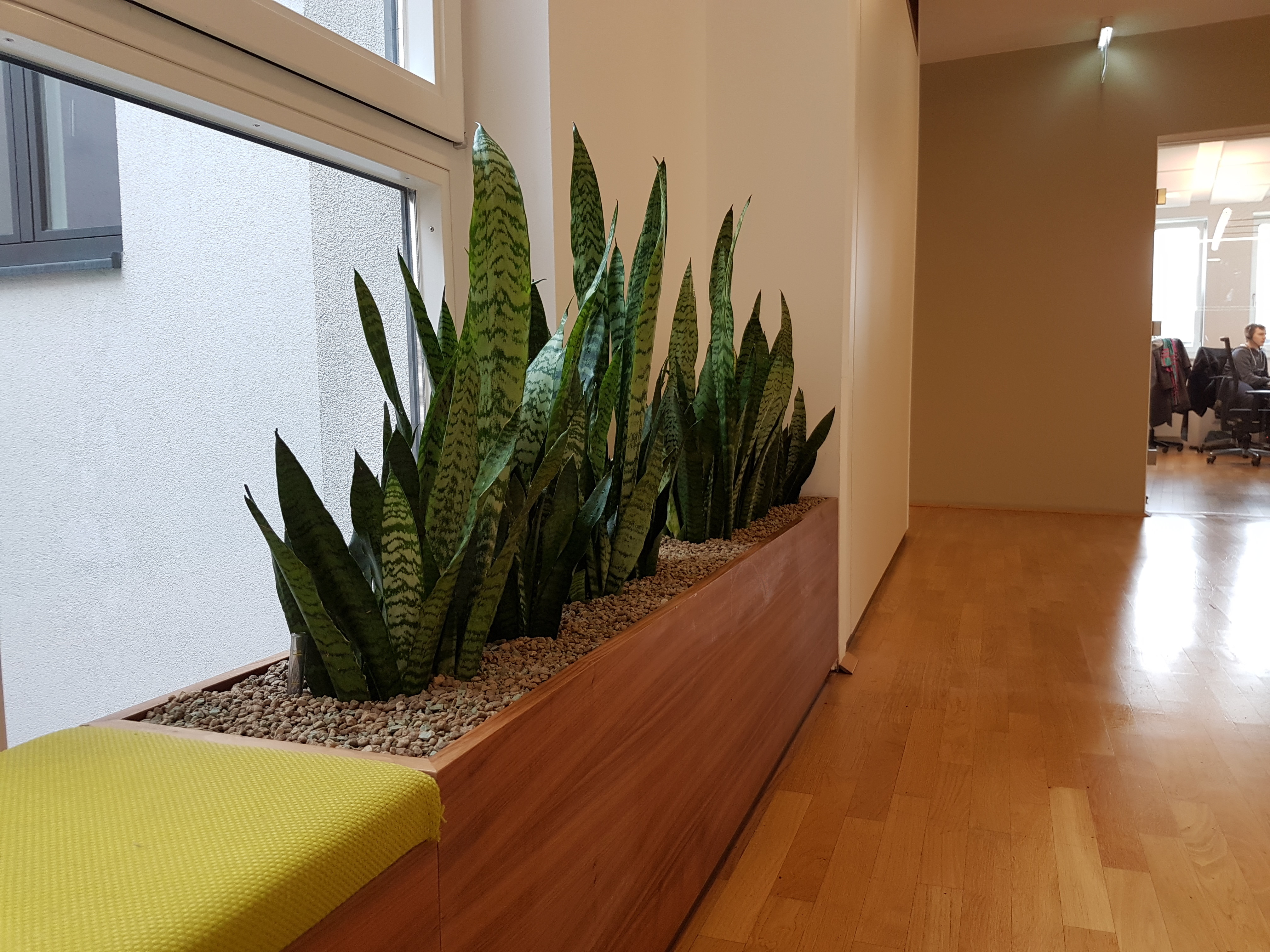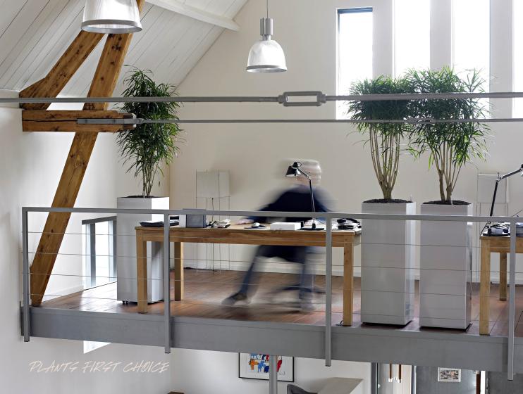 Hohe Gefäße oder Bepflanzungen auf einem Sockel sind immer dann vorteilhaft, wenn durch ein hohes Mauersims oder Schreibtische mit einer Verschattung im Bodenbereich zu rechnen ist. Bei Gestaltungen auf einem Sockel kommt noch eine enorm elegantes Erscheinungsbild dazu.