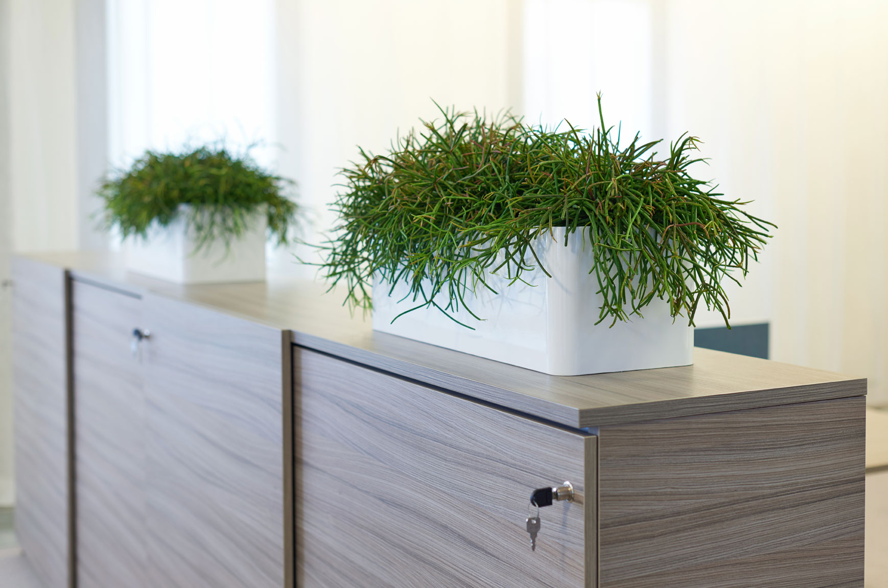 können individuell zu den Büromöbel massgefertigt werden. Es macht aber dennoch Sinn aus Kostengründen Standardmaße anzuwenden. Metallgefäße mit Pulverbeschichtung können auf die Möbelmasse (Bürokasten) abgestimmt und in unterschiedlichen Farben pulverbeschichtet werden (Aufbauwanne). Diese Gefäße werden auf das Möbel gestellt und bilden durch die genaue Passform und Farbe mit dem Möbelstück eine Einheit.