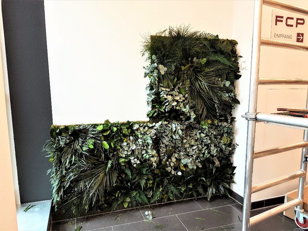 Die trendigen Pflanzen-, Mooswände und Hängebepflanzungen müssen vor Ort montiert werden. Unser geschultes Montageteam kümmert sich darum, die modernen Gestaltungen bauwerkschondend und sauber anzubringen.